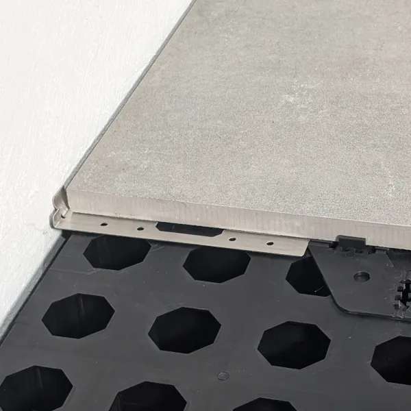 Der Randabschluss-Clip für Stelzlager sichert Ihre Terrassenplatten an Mauerkanten und schützt gleichzeitig das angrenzende Mauerwerk vor Beschädigungen. Dieses praktische Zubehör aus Edelstahl garantiert einen gleichmäßigen Wandabstand und ermöglicht einen sauberen Wasserabfluss am Terrassenrand.