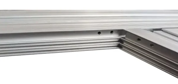 - Verschrauben: Fixieren Sie den Schrägverbinder abschließend mit den mitgelieferten Edelstahlschrauben an beiden Profilen.