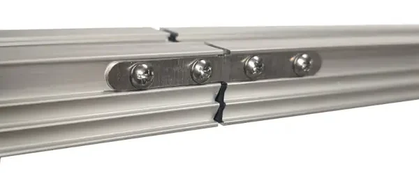 Diese Verbindungslasche wurde exklusiv für das Schienensystem Slim Easy entwickelt. Sie dient als mechanische Verstärkung für alle Längsstöße der Profile. Besonders bei großen Spannweiten oder hohen Belastungen ist diese zusätzliche Fixierung entscheidend für die langfristige Steifigkeit der gesamten Rahmenkonstruktion.