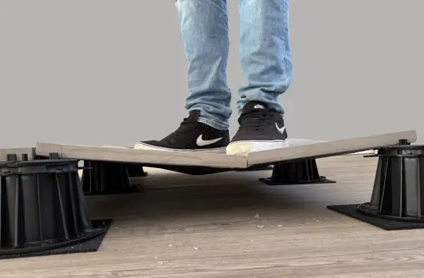 Ursache Konsequenz Lösung Stelzlager haben keinen festen Stand und wackeln Die verlegten Platten bewegen sich beim Auftreten – Demontage